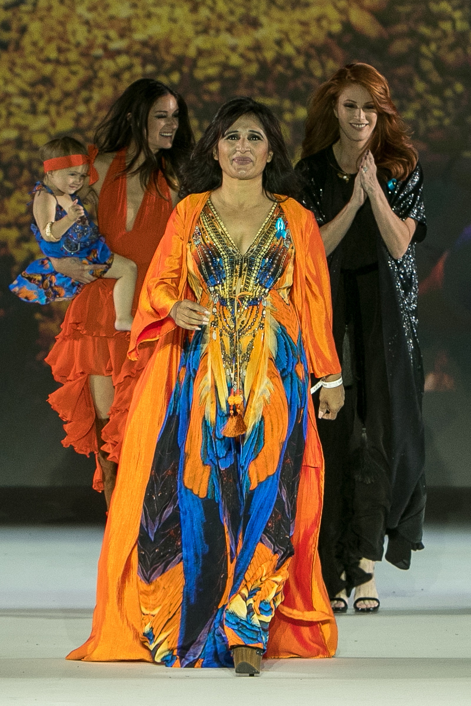 Celebrities who took to the runway include: actress and celebrity DJ Caroline D’Amore with her two year old daughter Isabella Viking, Bollywood actresses Pooja Batra and Kalpana Pandit, transgender model and America’s Next Top Model contestant Quei Tann and actress and Supermodel Angie Everhart.