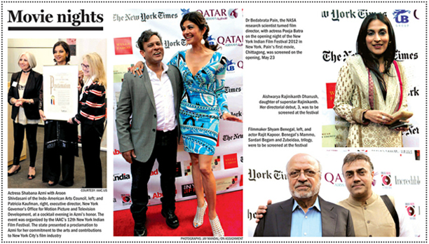 Dr Bedabrata Pain,the NASA research scientist tumed film director, with actress Pooja Batra on the opening night of the new York Indian Film Festival 2012 in New York. Pain's first movie, Chittagong,was screened on the opening, May 23. |