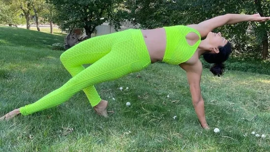 Pooja Batra says, 'Yoga se hi hoga,' as she practises difficult yoga asanas in her backyard in a new workout post. She practised yoga asanas that helped stretch her body and calm her mind.
