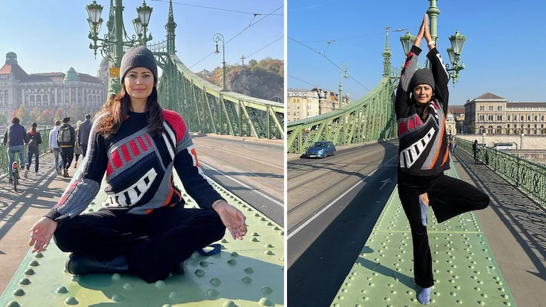 If you are someone who has been following Pooja Batra on Instagram, you will know that the actress swears by her yoga regime and is a big-time fitness enthusiast. On Sunday, she treated her Instafam to some million-dollar pictures of herself from Budapest. In the pictures, Pooja can be seen soaking up the autumn sun. Pooja Batra shared some picture of herself doing yoga on Budapest's Liberty Bridge.